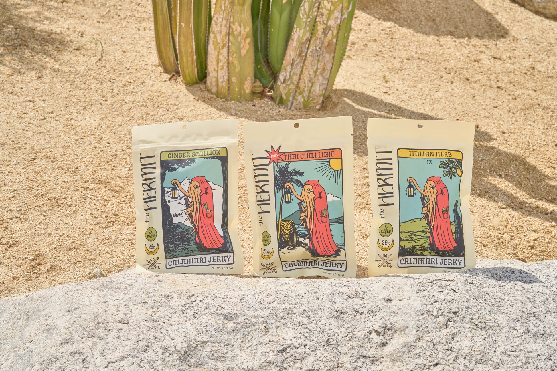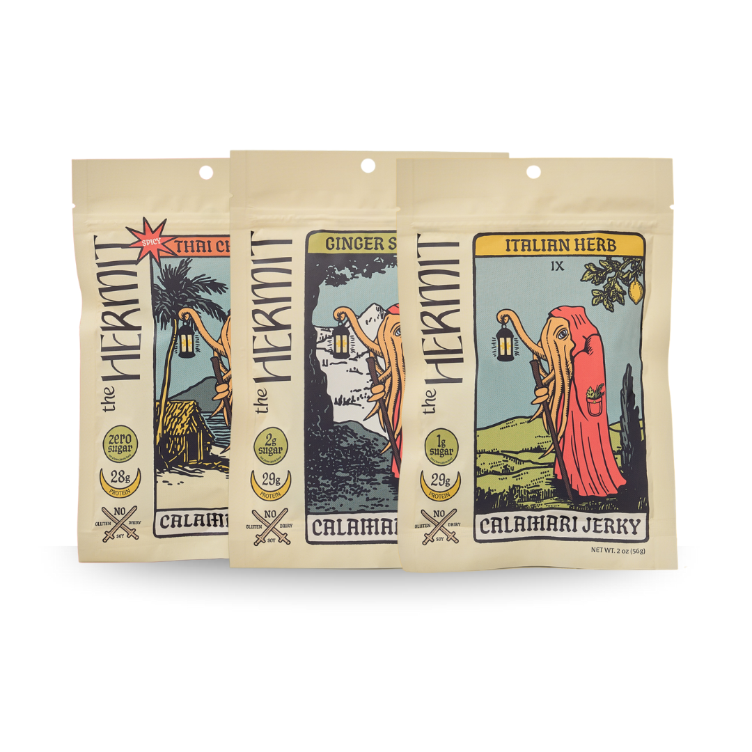 The Flavor Journey Bundle includes all three of our boldest, best-selling calamari jerky flavors — Ginger Scallion, Thai Chili Lime, and Italian Herb — each crafted with 100% wild-caught American squid and real, clean ingredients.