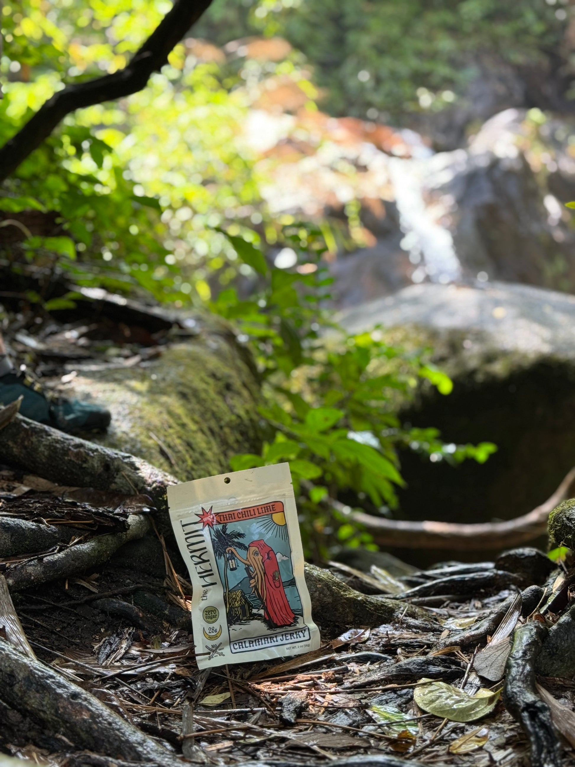 Shipwrecked on the sun-drenched shores of the Andaman Sea, The Hermit is enticed by the aromas from a nearby fisherman’s hut - the aromatic dance of lemongrass, the subtle warmth of galangal, and the fire of the bird’s eye chili. Our Thai Chili Lime calamari jerky fuses together these flavors, offering intensity and heat alongside the savory squid.